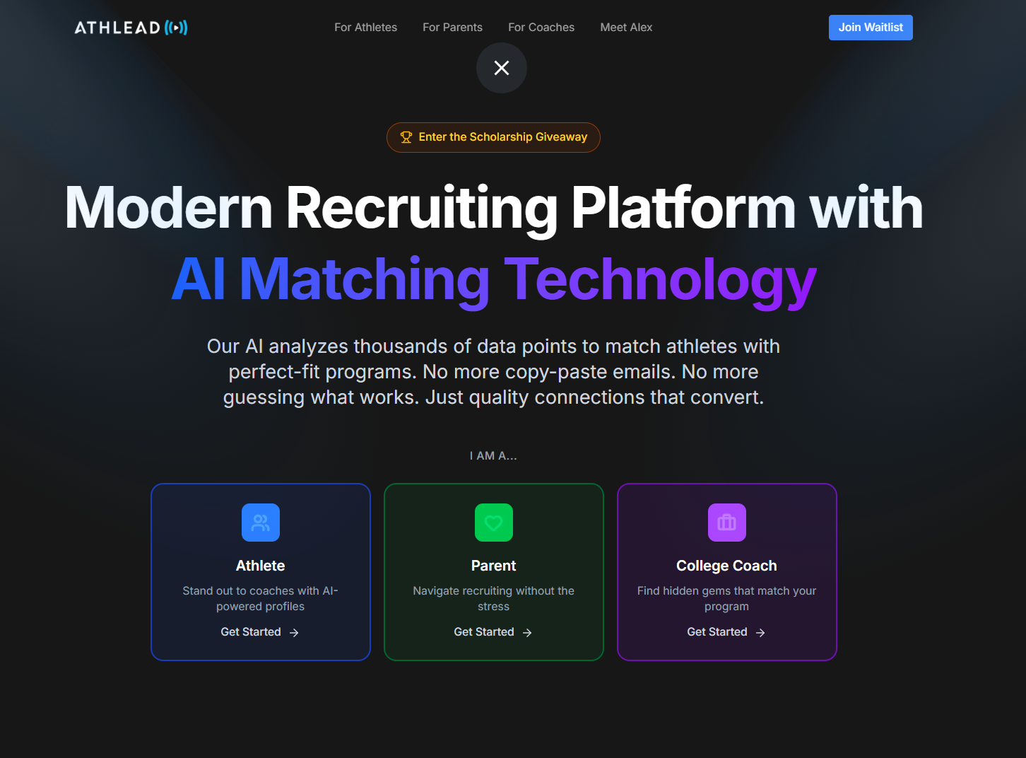 AI-powered college recruiting platform for student-athletes with intelligent matching technology.