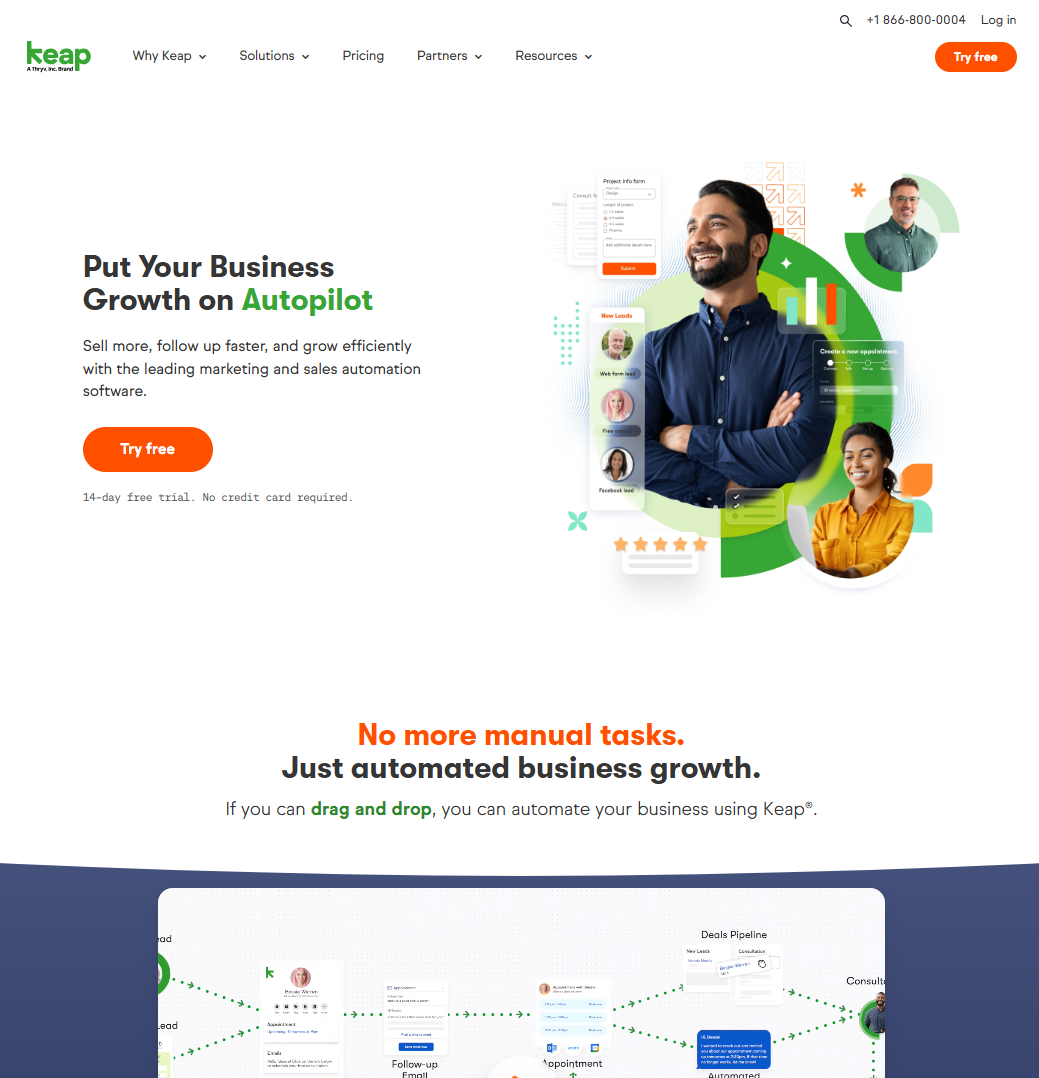 Keap (formerly Infusionsoft) offers all-in-one CRM, sales, and marketing automation for small businesses—helping entrepreneurs manage leads, send automated campaigns, and close more deals.